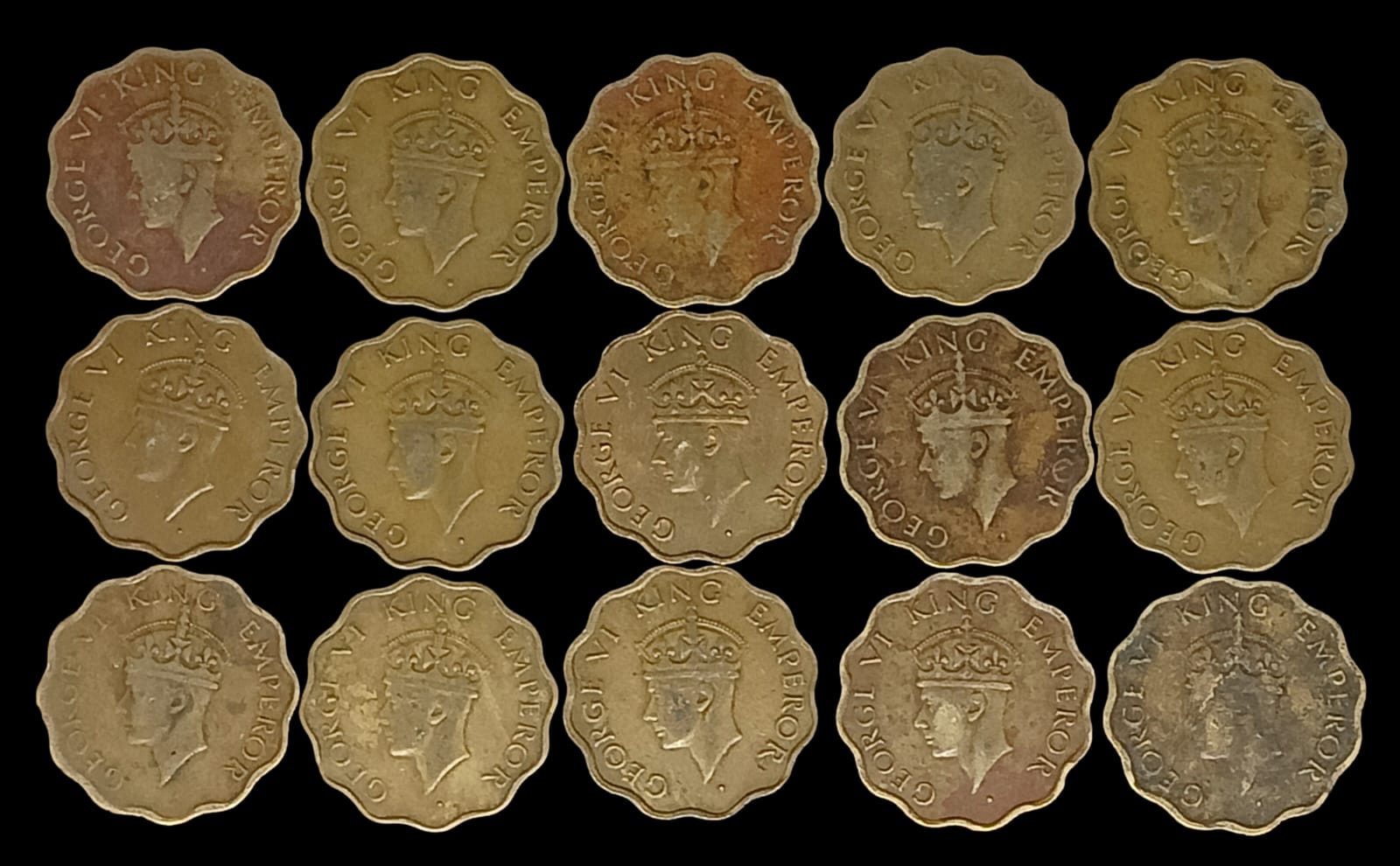 Issued under George VI, this 1 Anna coin represents late colonial Indian coinage.