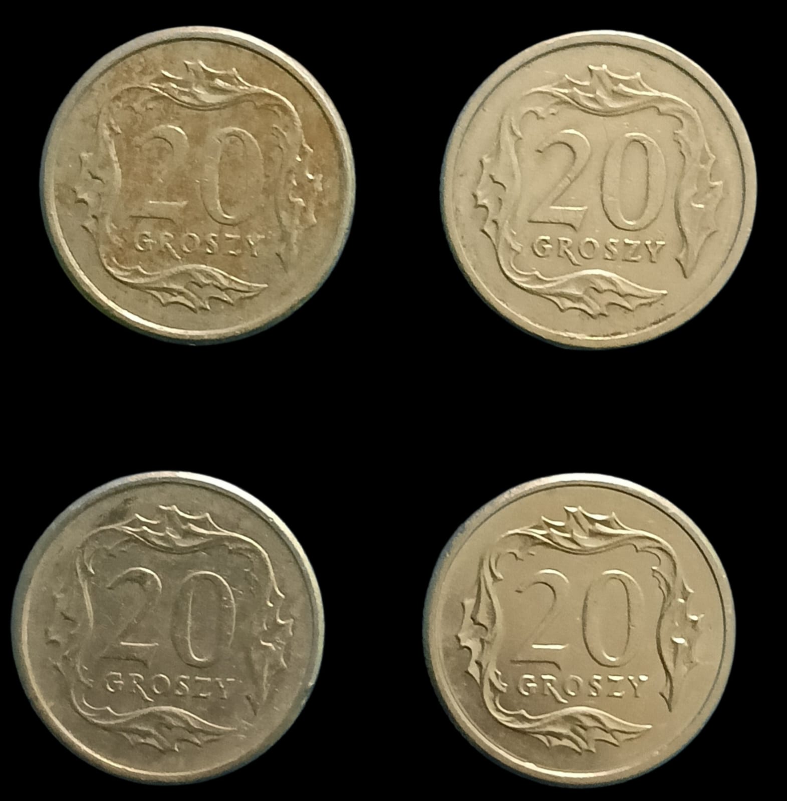 The reverse features the denomination “20 Groszy” enclosed within a stylized wreath, giving the coin a distinctive and balanced visual identity.